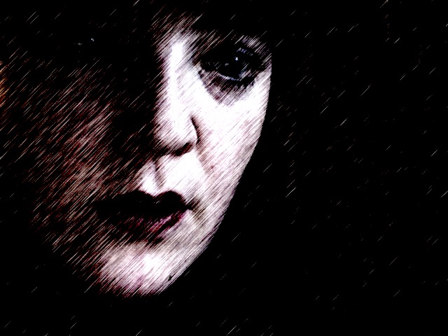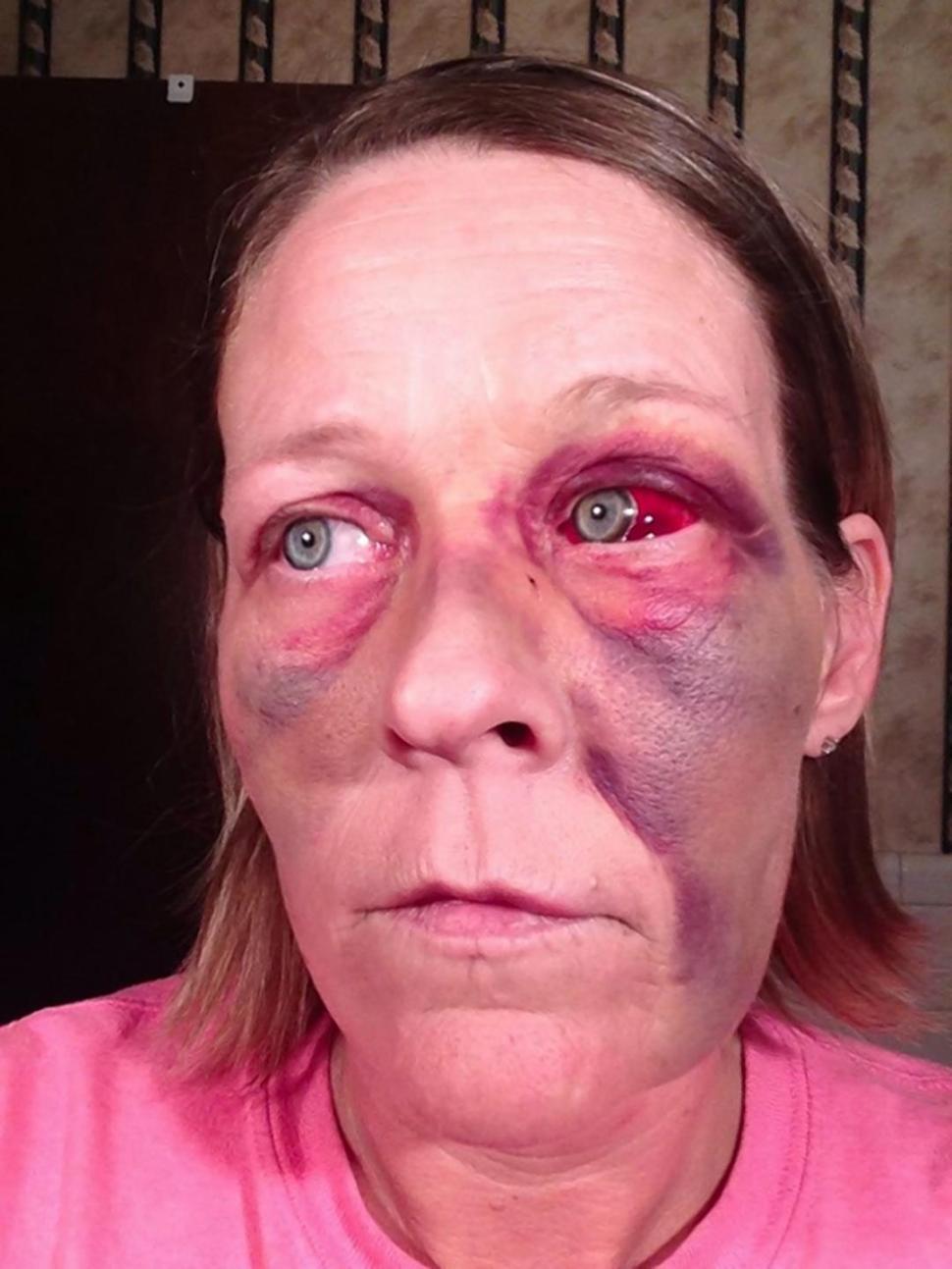 She picks herself up and I see her black eye
