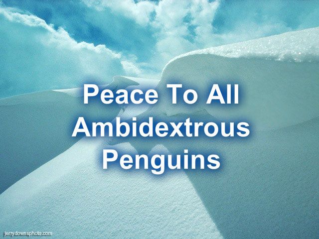 Peace to all ambidextrous penguins