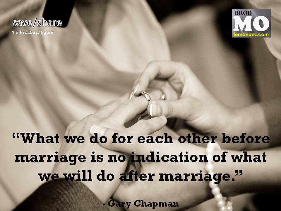 “What we do for each other before marriage is no indication of what we will do after marriage.”