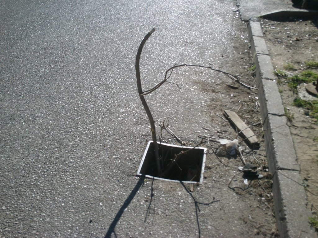 Drveno obavještenje vozačima koji uredno plaćaju registarciju vozila da šaht nema poklopca, odnosno da je ukraden