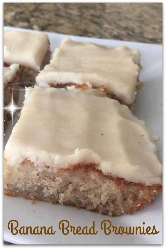Brown Butter Frosting: 1/2 c. butter 4 c. powdered sugar 1-1/2 tsp. vanilla extract 3 tbsp. milk . Directions: 1. Heat oven to 375F. Grease and flour 15×10-inch jelly roll pan. For the bars, in a large bowl, beat together sugar, sour cream, butter, and eggs until creamy. Blend in bananas and vanilla extract. Add flour, baking soda, salt, and blend for 1 minute. Stir in walnuts. . 2. Spread batter evenly into pan. Bake 20 to 25 minutes or until golden brown. . 3. Meanwhile, for frosting, heat butter in a large saucepan over medium heat until boiling. Let the butter turn a delicate brown and remove from heat immediately. . 4. Add powdered sugar, vanilla extract and milk. Whisk together until smooth (it should be thicker than a glaze but thinner than frosting). Using a spatula, spread the brown butter frosting over the warm bars (the frosting will be easier to spread while the bars are still warm).
