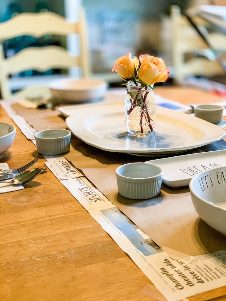 I had to leave around 4:30 to make an appearance at a surprise birthday party for one of my students, so I set the table before heading out. While I was upstairs brushing my hair, I heard the boys come in and say, “Oh, it’s going to be fancy tonight!” Made my heart smile.
