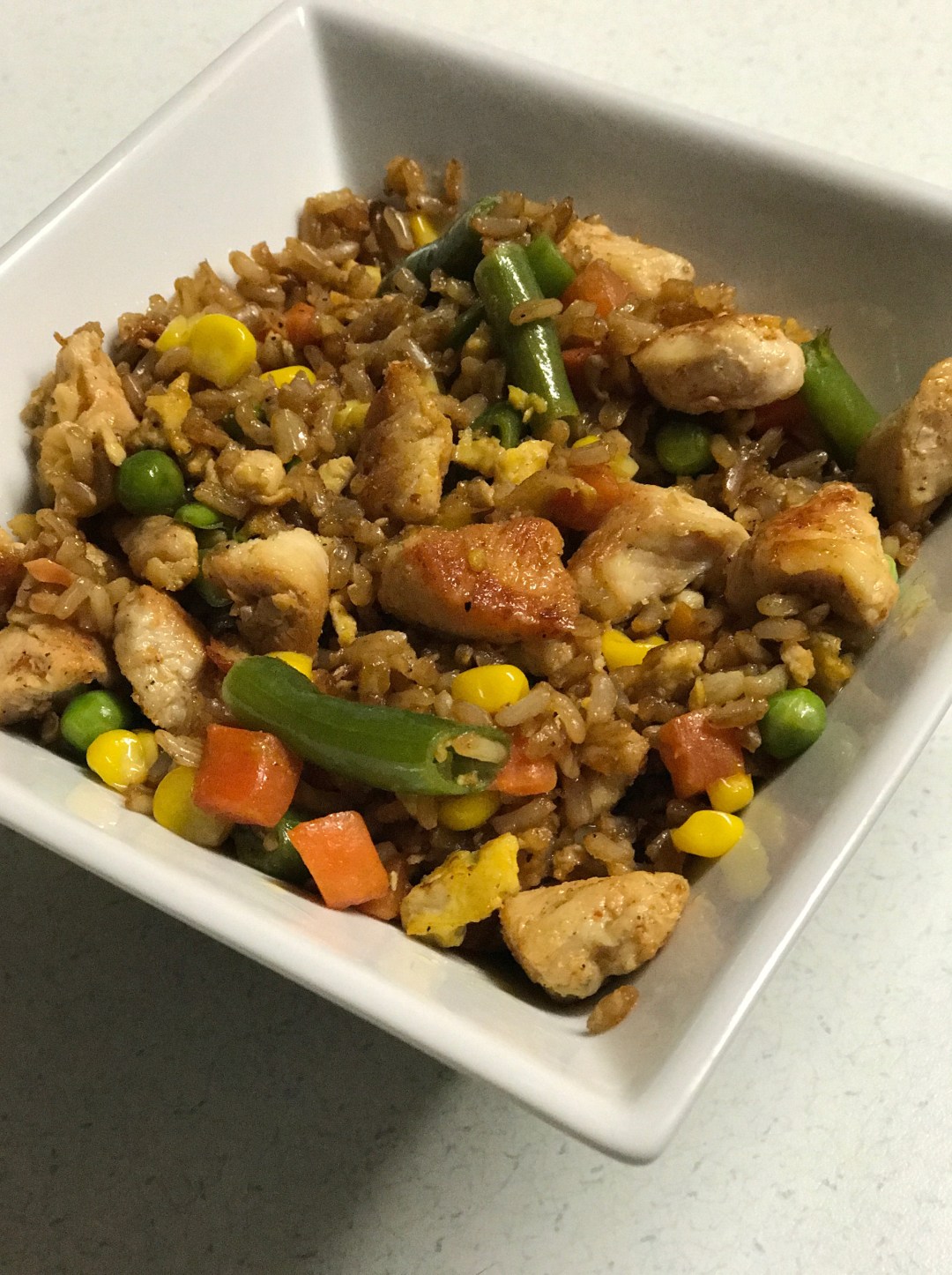 One of my favorite foods to eat is Chicken Fried Rice. It’s so yummy and has vegetables, it’s salty, and it can be a side dish or a main dish. What is there not to love? Yes, I know it’s easy and affordable to order Chicken Fried Rice from your local takeout restaurant, but I prefer to prepare my meals at home. Plus, I can add anything I want and how much I want to it. Here is my version that is easy, tasty and everyone is sure to love it!
