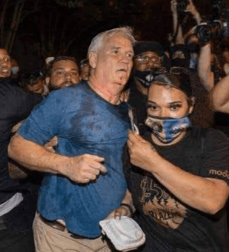 This elderly man wanted to see the fireworks at the RNC. As he was walking to a place he could see them, he was attacked by these savage BLM Democrats. They shouted at him, with the bullhorn right at his ear, they surrounded him and demanded that he leave, however, they had him surrounded so he couldn’t leave. This uncivilized mob punched him, knocked him to the ground, kicked him and poured water in his face.