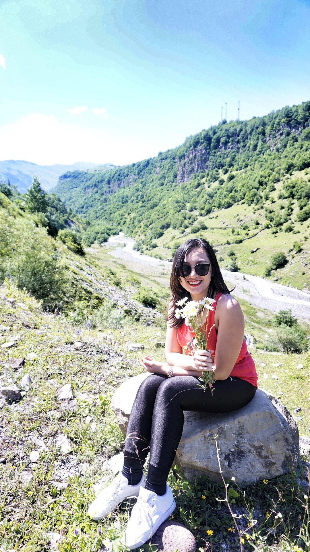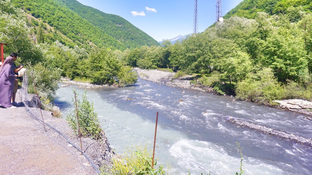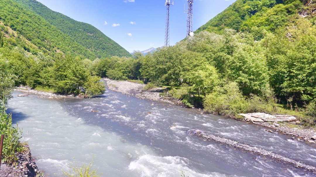 The Tetri Aragvi (“White Aragvi”) flows from Gudauri down to the town of Pasanauri, where it is joined by the Shavi Aragvi (“Black Aragvi”), before flowing south to merge with the Mtkvari River by Mtskheta, the Eastern Georgia’s ancient capital city, just north of Tbilisi.