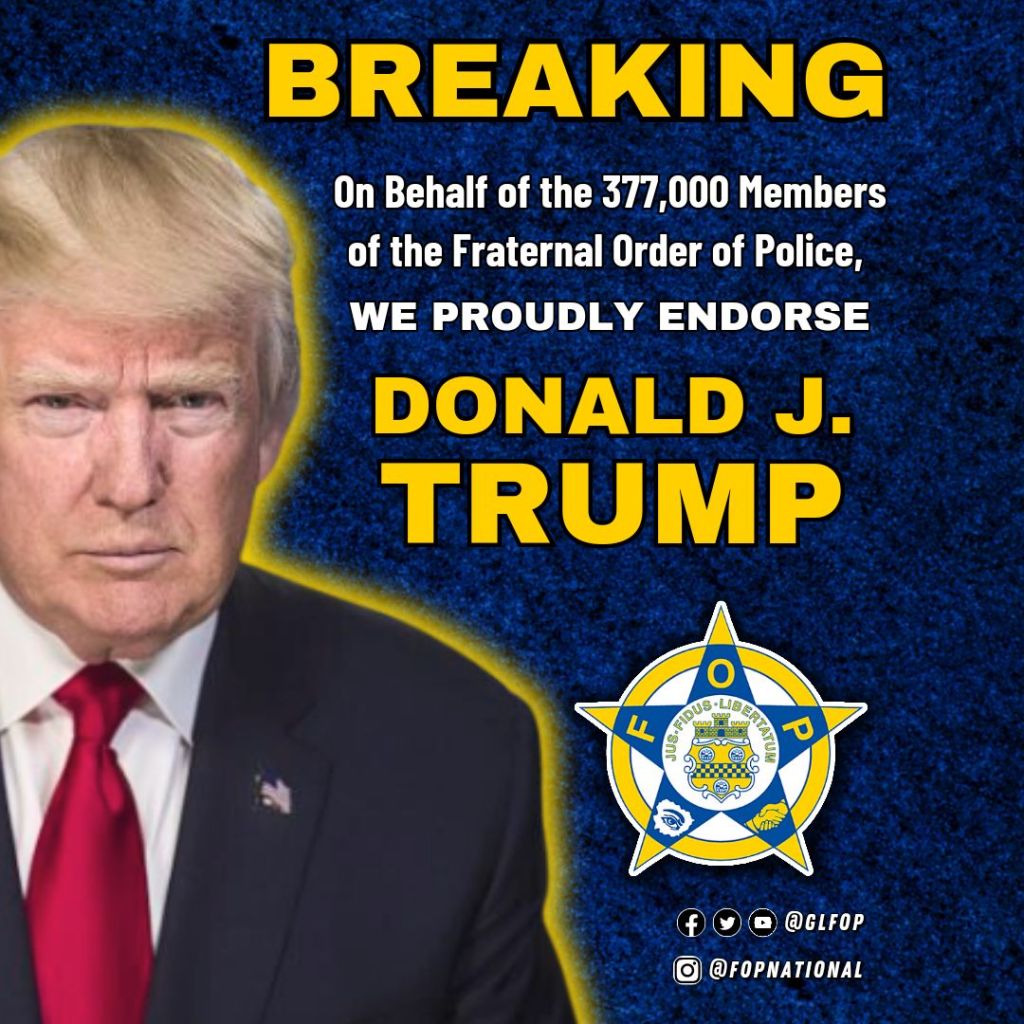 Our presidential endorsement process is thorough and inclusive, involving over 377,000 members across the nation. Today, it’s a privilege to announce that the collective will of our members has led us to endorse Donald J. Trump for President. We’re committed to supporting leadership that upholds the safety and effectiveness of law enforcement. #VoiceOfThePolice#FOPVotes
